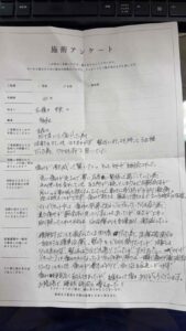 今回は半年以上続いていた四十肩(五十肩)の痛みが激減した患者さんの感想をご紹介させて頂きます。